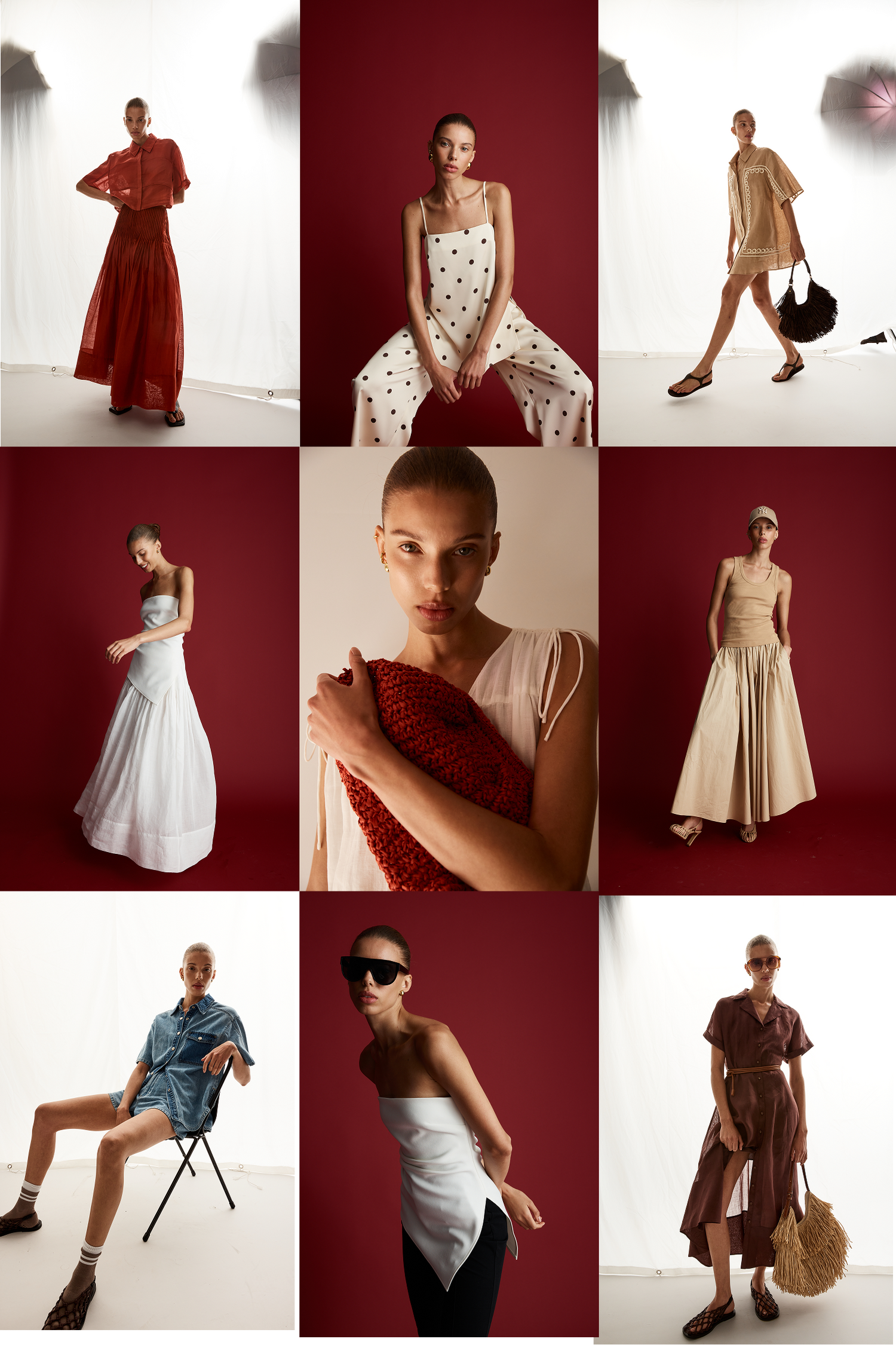A considered edit shaped by intention and ease. Thoughtful silhouettes, subtle detail, and a colour palette that echoes the summer shadows.