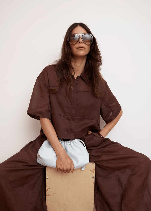 A wardrobe staple designed to wear on repeat. The Aire Ramie Crop Shirt in Cocoa blends clean lines with soft tailoring. Made from ramie for a lightweight feel with linen-like structure.