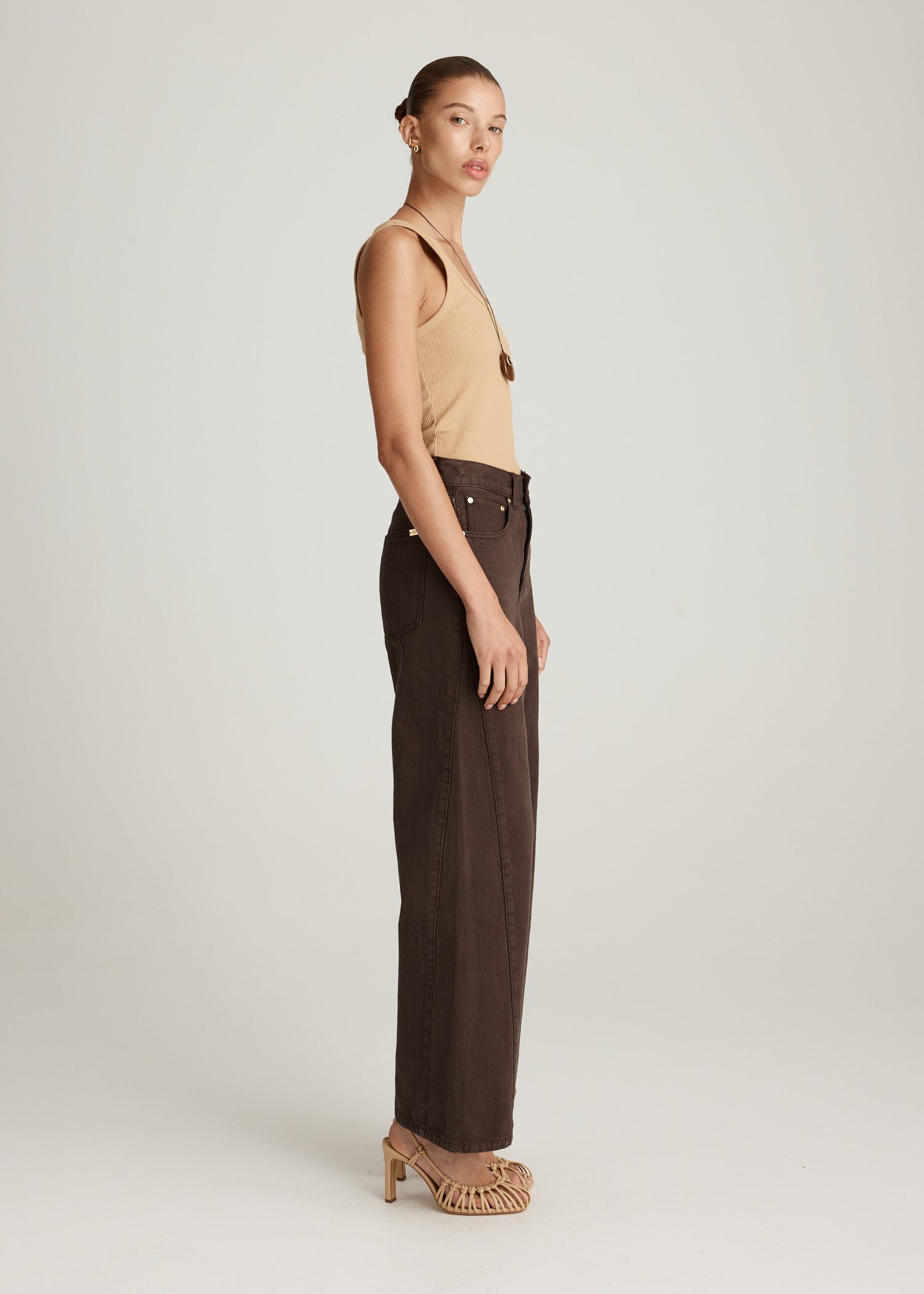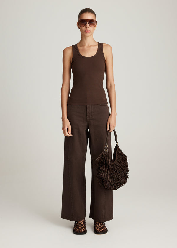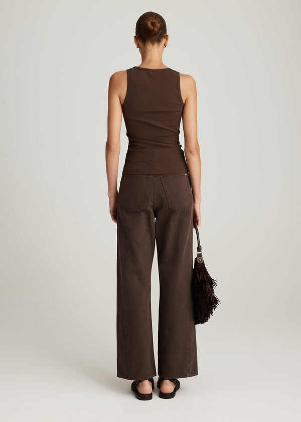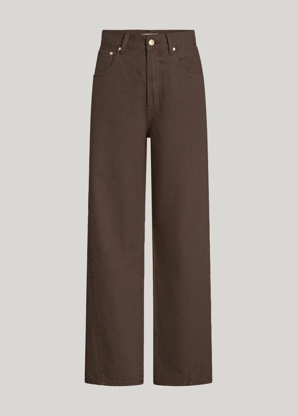 The Axis Jean in in Cocoa is a contemporary staple, cut in a rich brown denim with a high-rise waist and elongated straight leg silhouette. Designed with functional pockets and clean seams, it offers a streamlined shape that will be an effortless addition to any wardrobe.