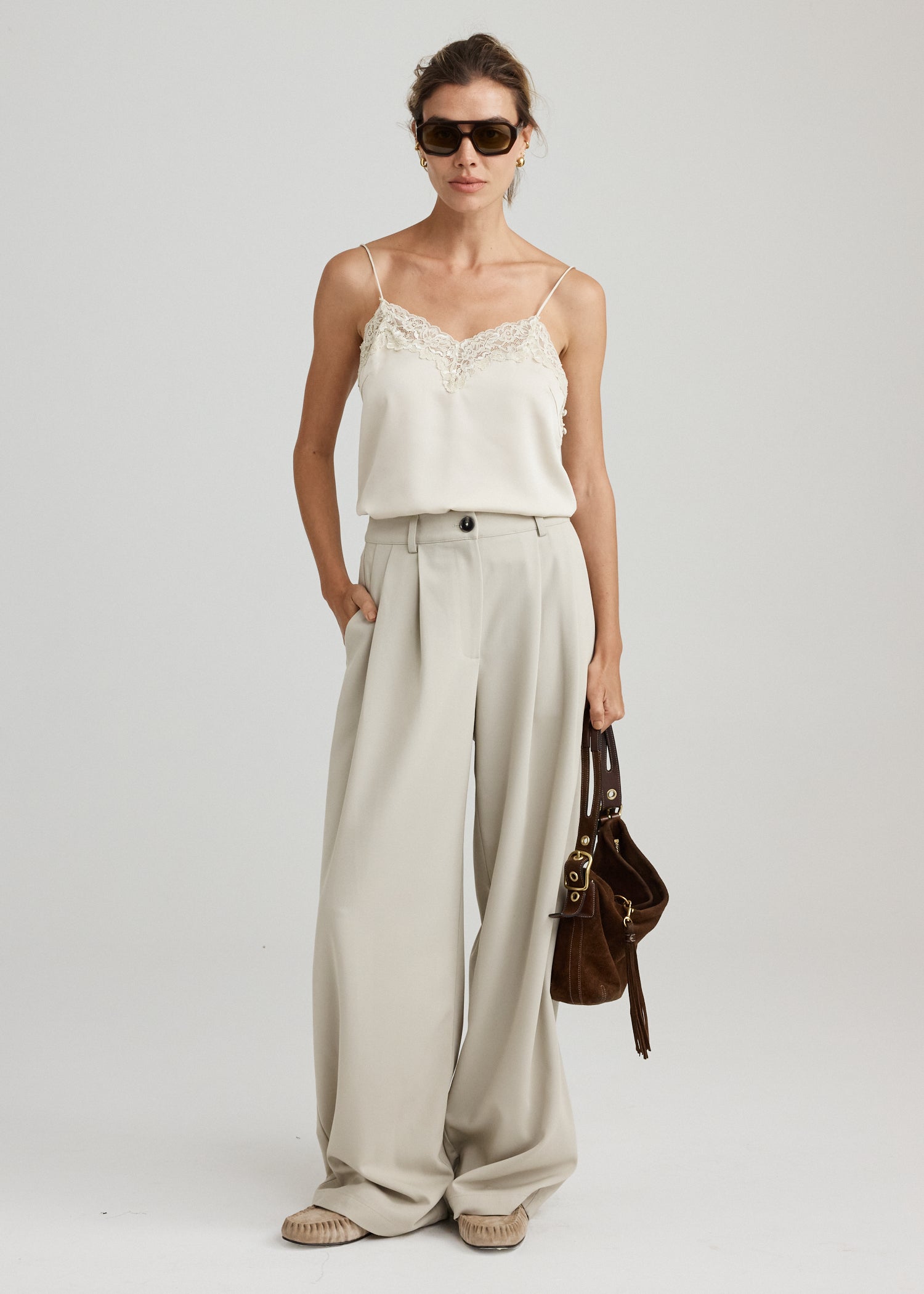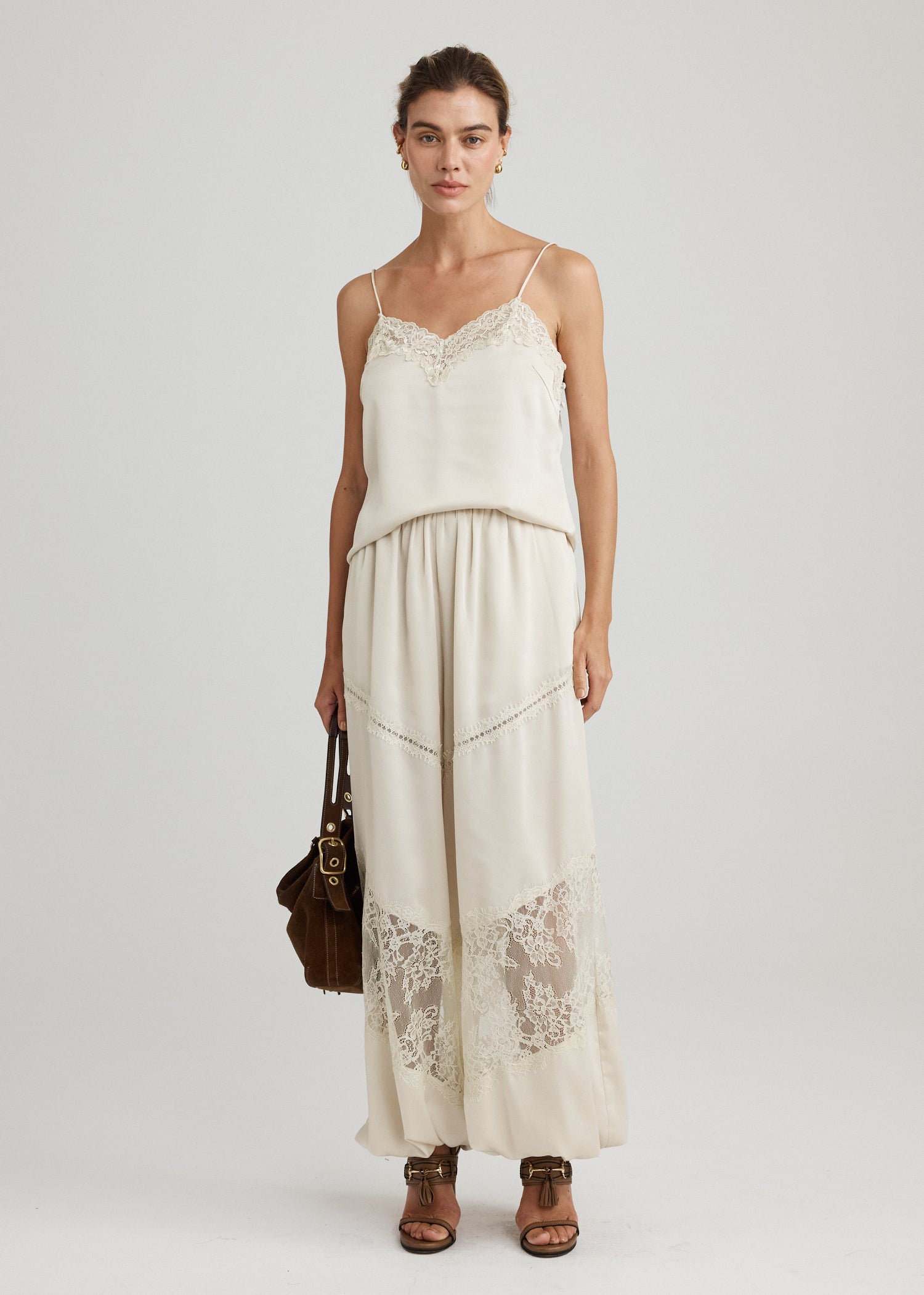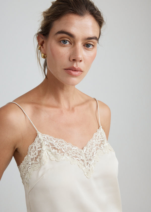 A modern update on a classic camisole, the Baxter Lace Cami in Champagne brings modern femininity to your wardrobe. Cut in a soft satin fabrication, featuring a complimentary lace trim around the neckline and hemline. This camisole offers a soft v-neckline and adjustable spaghetti straps. Style with the Baxter Lace Pant or pair back with your favourite denim.
