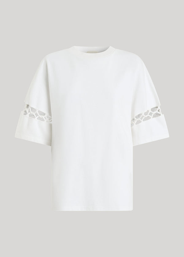 An elevated essential for everyday wear. The Linea Tee in White is cut from breathable cotton in a relaxed silhouette, finished with elongated sleeves and handmade rope-style detailing for a refined edge.