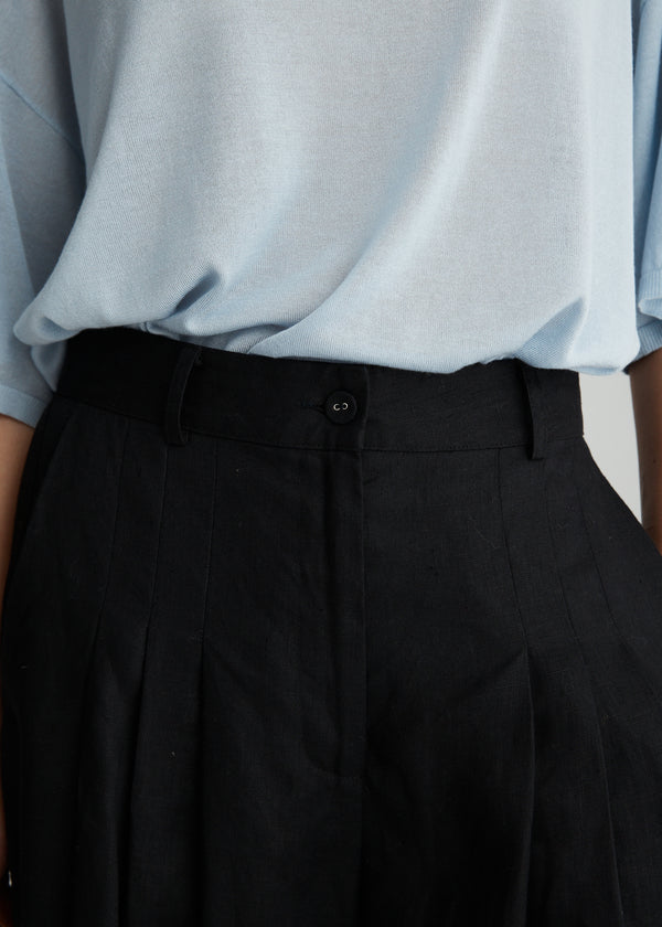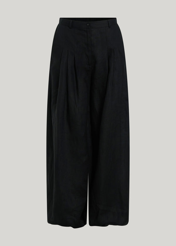The Lulu Linen Pant in Black delivers a relaxed balloon silhouette for summer dressing. Designed with a high waist, side pockets and soft pleating at the waist for a more flattering look.