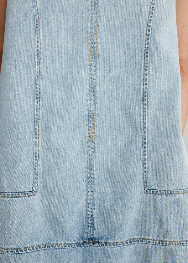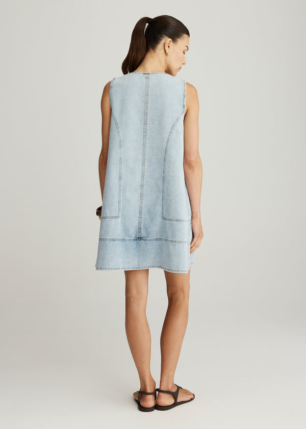 Modern denim redefined. The Maja Dress in Light Wash is cut from a soft relaxed denim, detailed with exposed panel stitching along the shift dress silhouette to maintain effortless ease with a point of difference.