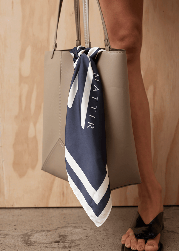 A refined finishing touch for every wardrobe. Crafted from a satin fabrication, the MATTIR scarf in Charcoal drapes fluidly and catches the light with subtle sheen. The geometric linework nods to MATTIR’s signature minimalism. Style it as a bandeau top, tied at the neck, through the hair, or wrapped effortlessly around the handle of a bag.