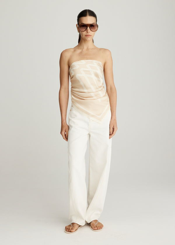 A refined finishing touch for every wardrobe. Crafted from a satin fabrication, the MATTIR scarf in Sand drapes fluidly and catches the light with subtle sheen. The geometric linework nods to MATTIR’s signature minimalism. Style it as a bandeau top, tied at the neck, through the hair, or wrapped effortlessly around the handle of a bag.