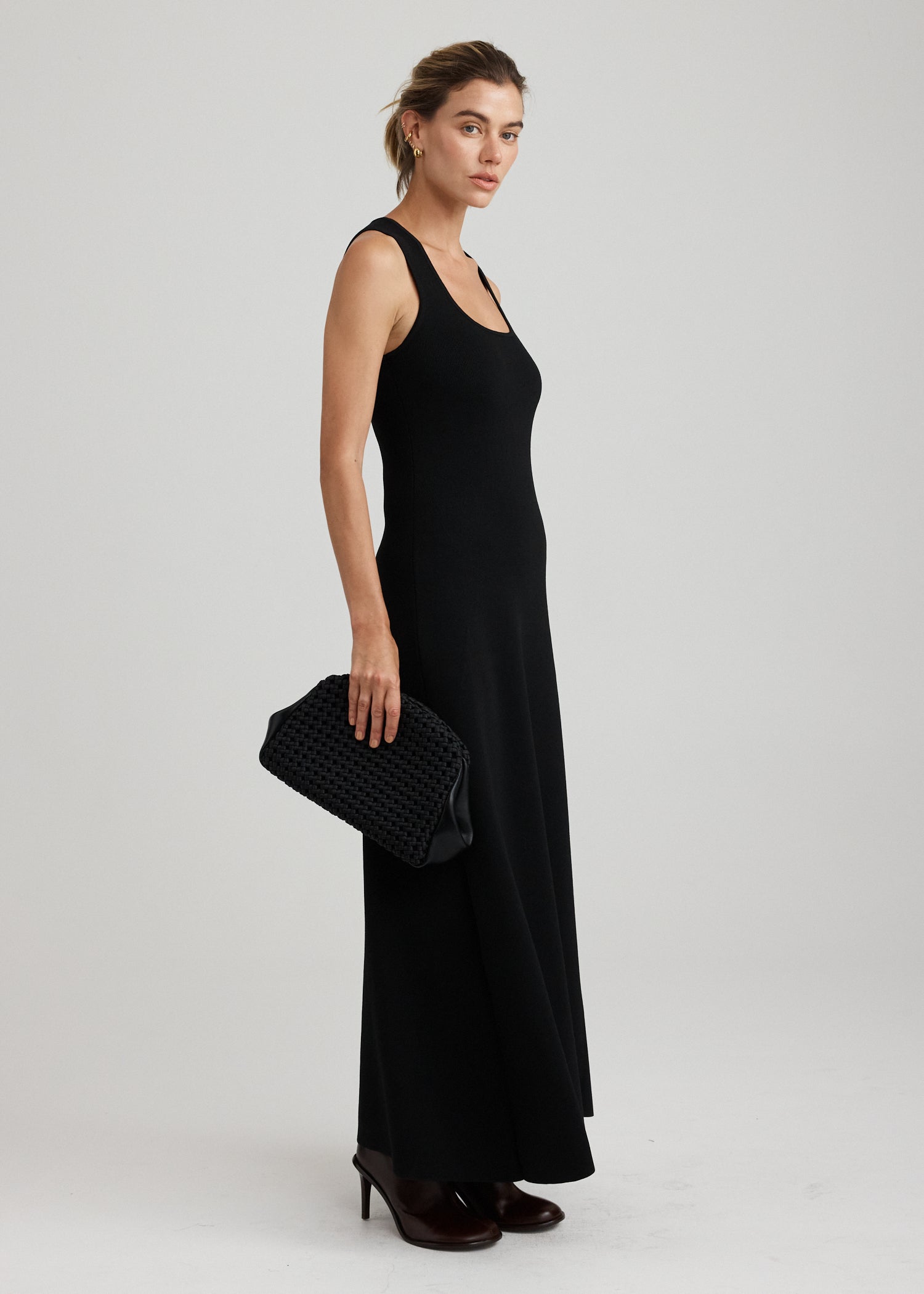 The Sage Knit Maxi Dress in Black has been designed in a soft knitted fabrication that skims the body. With a low scoop neckline and wide straps for all day comfort, this will transform from day through to evening.
