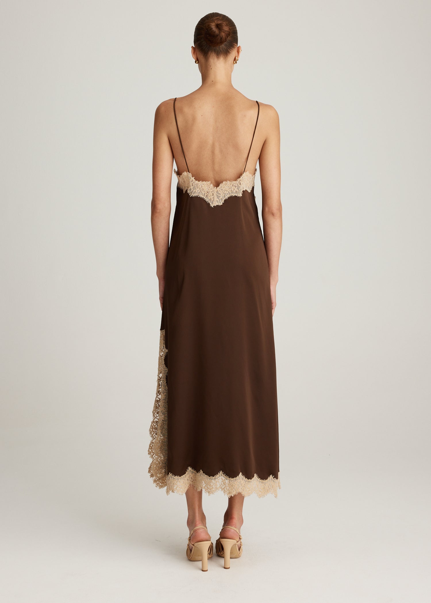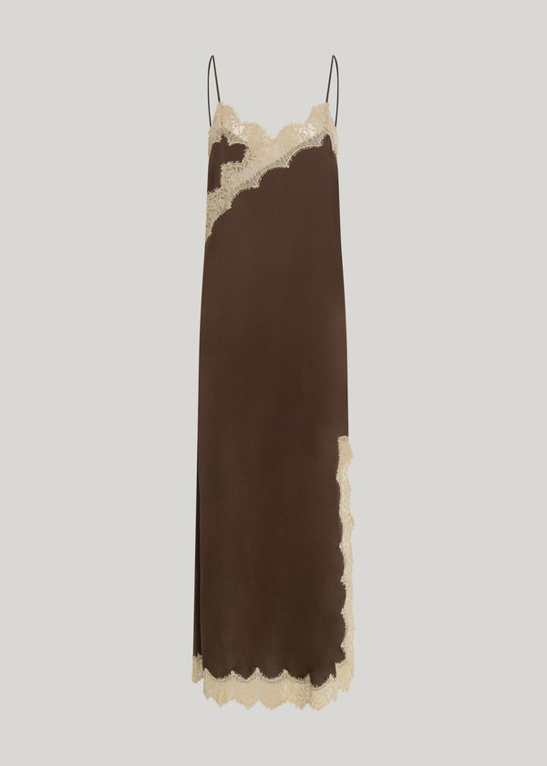 A modern update on a classic, the Soreli Lace Maxi in Chocolate brings modern femininity to your wardrobe. This slip style dress showcases a sharp v-neckline, spaghetti straps and elegant toffee lace detailing across the hem and bust. Completed with a side split for ease of movement.